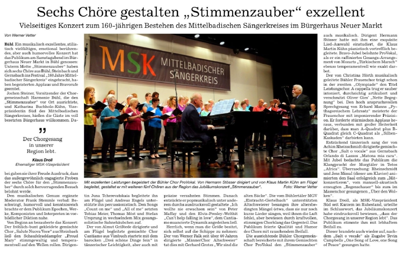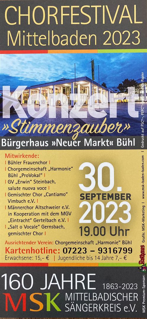 30.09.2023: Jubiläumskonzert des Mittelbadischen Sängerkreises um 19:00 Uhr im Bürgerhaus Neuer Markt in Bühl