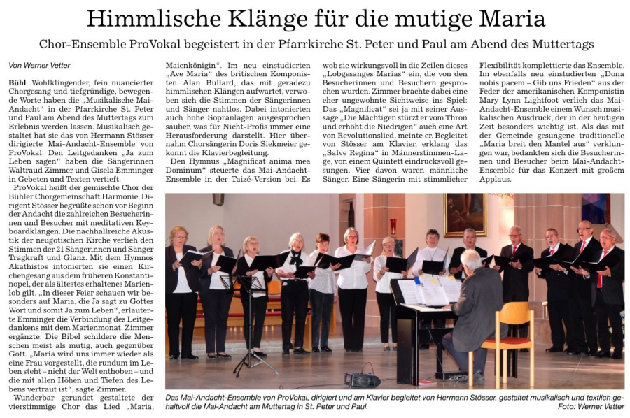 Mitgestaltung der Maiandacht durch ein Ensemble von ProVokal am 11.05.2025 in der Kirche St. Peter und Paul, Bühl