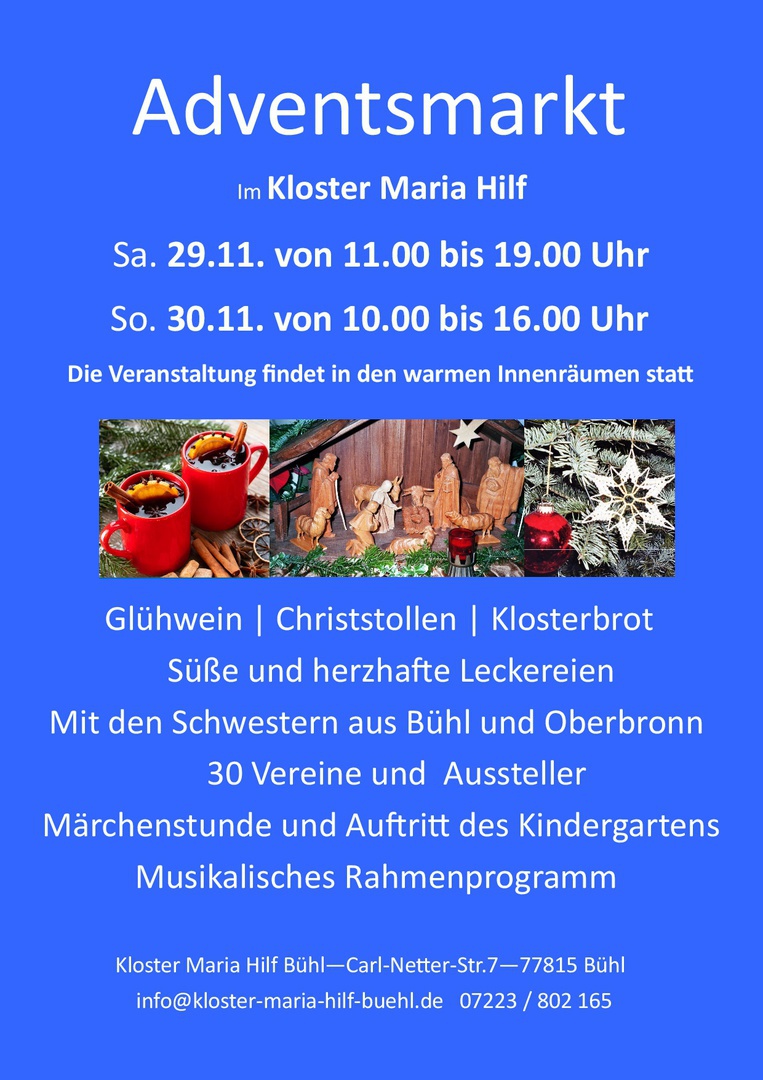 Auftritt beim Adventsmarkt im Kloster Maria Hilf in Bühl am Sonntag, 30.11.2025 ab 14:00h