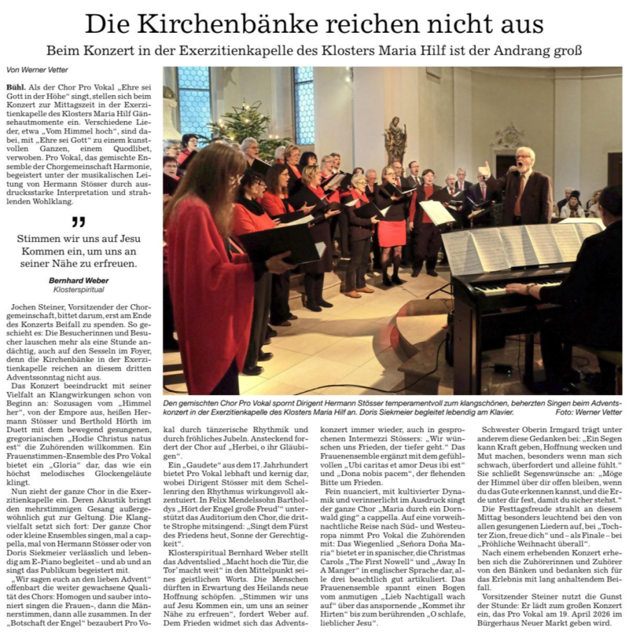 ProVokal-Konzert in der Exerzitienkapelle des Klosters Maria Hilf am 14.12.2025
